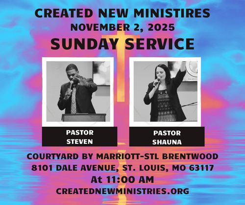 Created New Ministries is a non denominational, multicultural church. We pray that you will be uplifted, encouraged, and refreshed by visiting with us. Pastor's Steve and Shauna are about bringing The Word of God, also with power packed Revelations from God to the body of christ. Our mission is to touch the world with revival and win souls for The Kingdom of God. Our desire is to teach God`s people how to go in, possess their promised land, and have an intimate relationship with The Holy Spirit. We welcome you into The Created New Family!